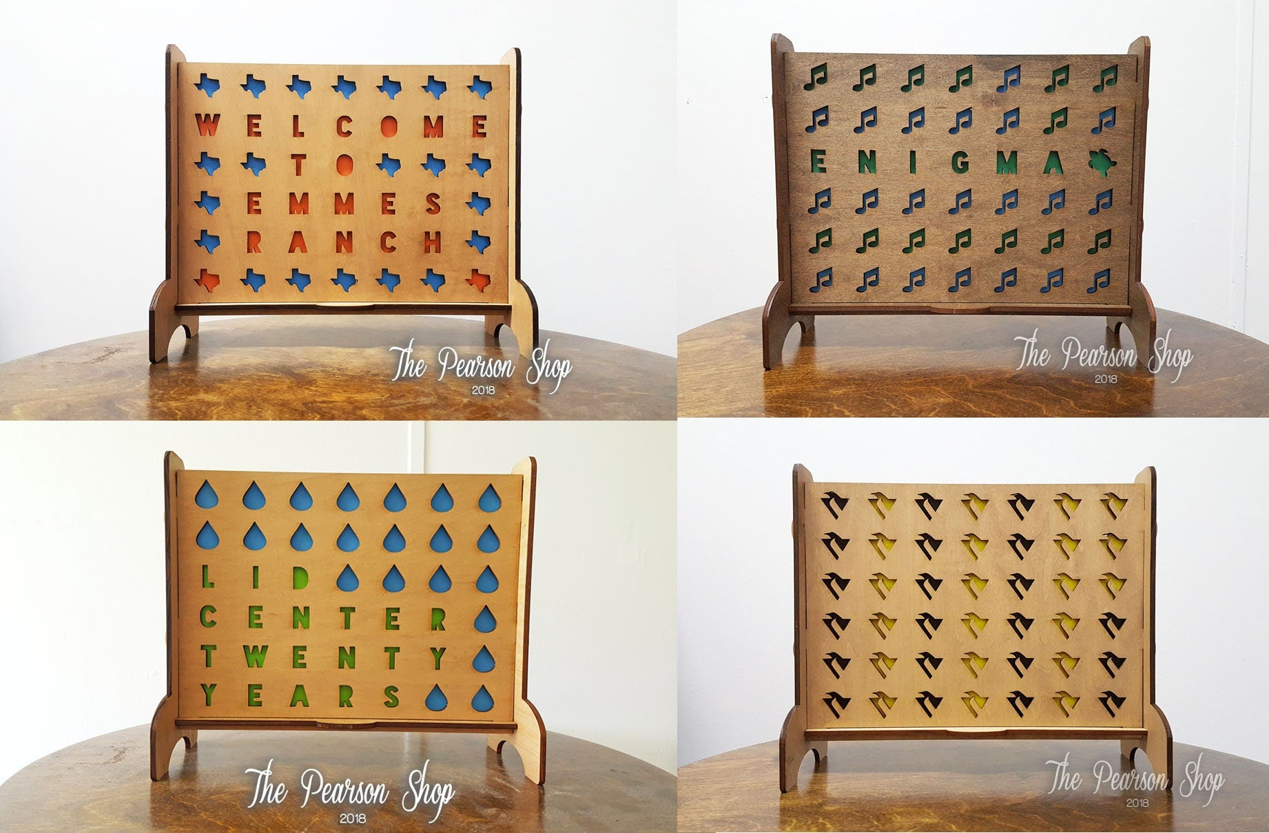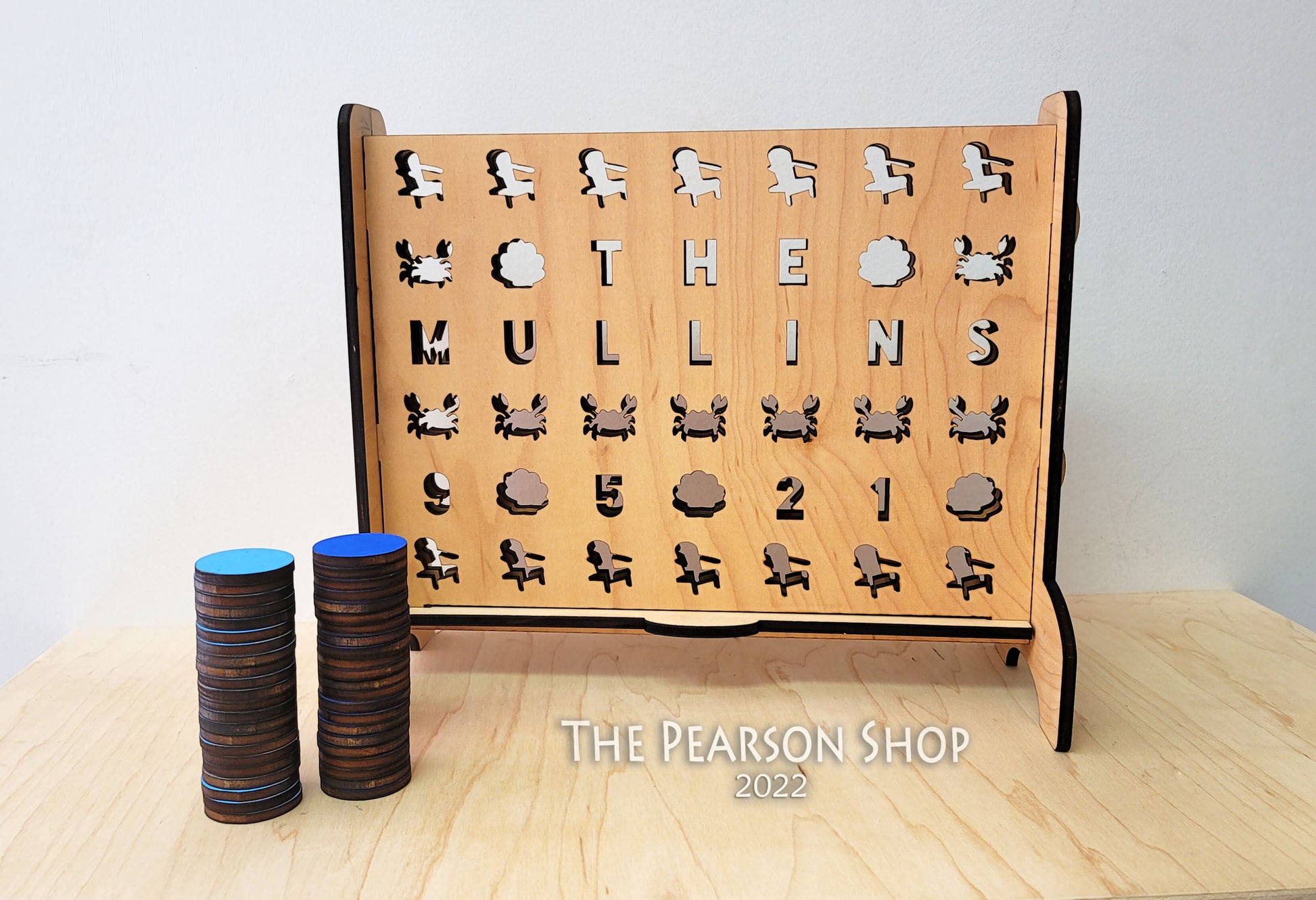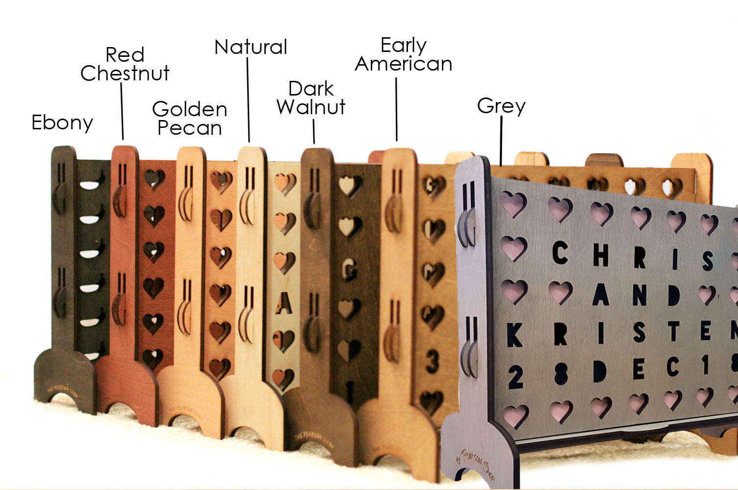 GAME → laser cut from 1/4" maple plywood. colored with minwax stain (if a stain color is chosen). "natural" color option is unfinished, natural wood.
