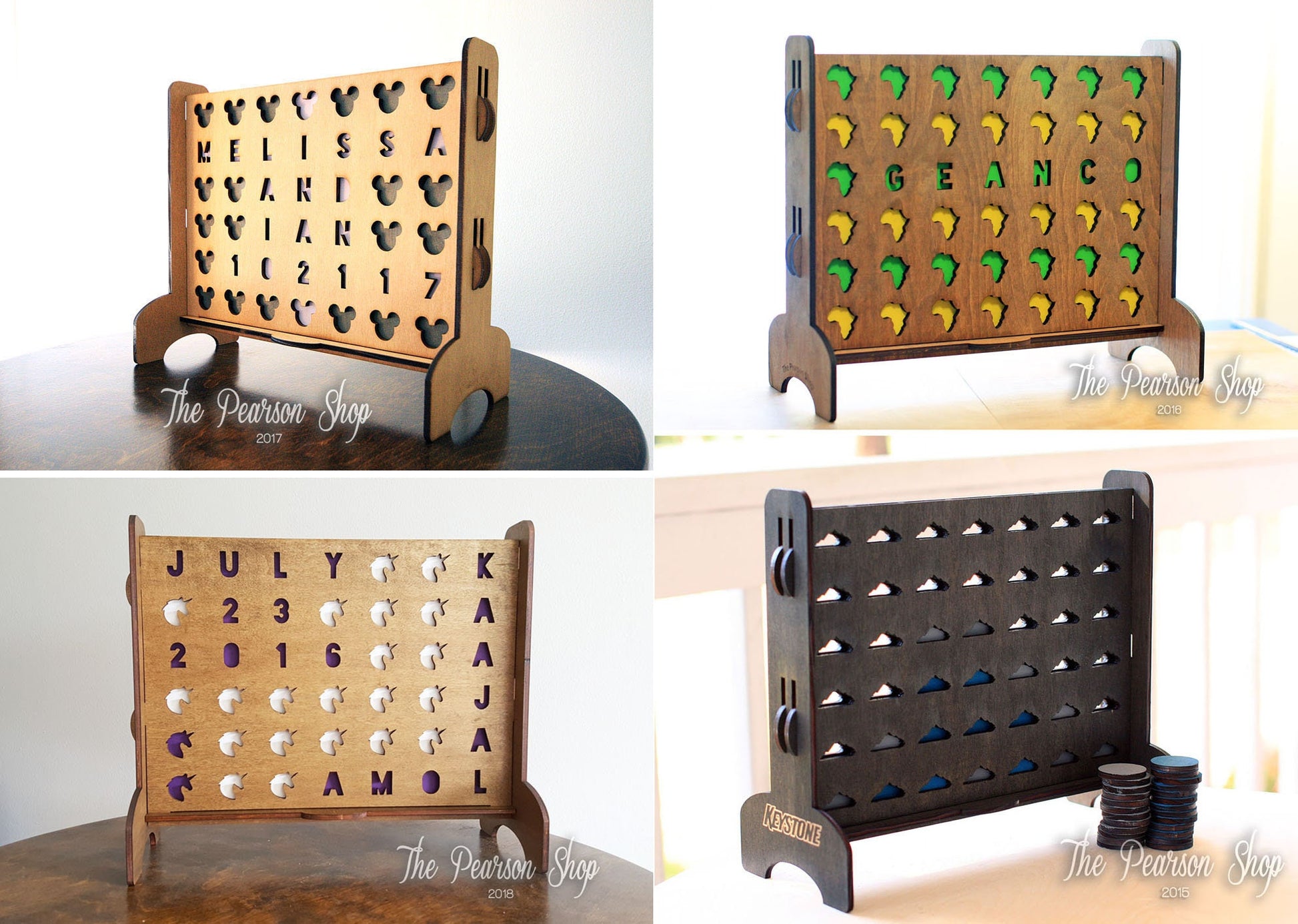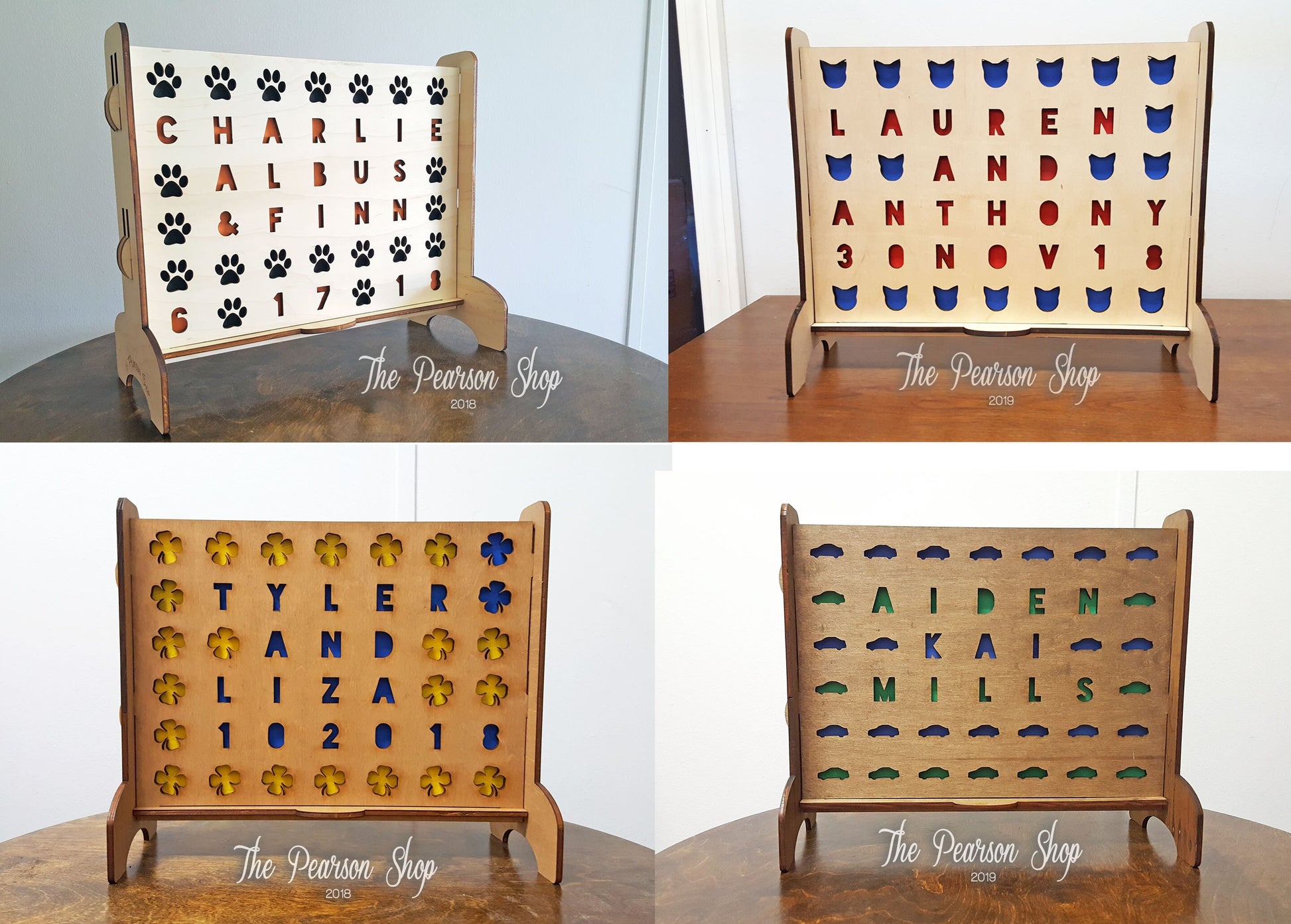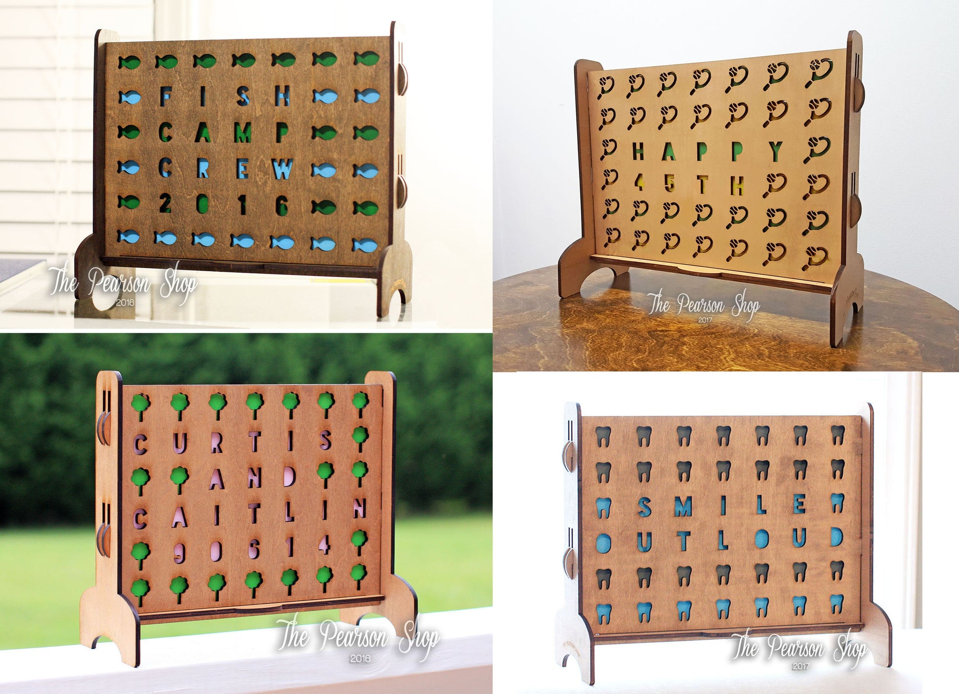 GAME → laser cut from 1/4" maple plywood. colored with minwax stain (if a stain color is chosen). "natural" color option is unfinished, natural wood.
