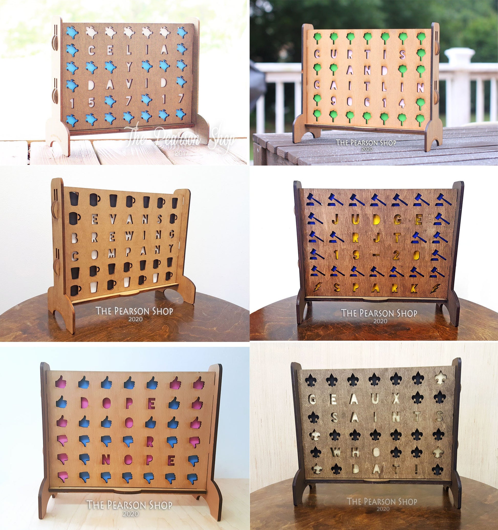 CUTOUTS → we can customize the cutouts for the game to almost any shape that will work as a cutout. we can personalize all cutouts or just a few, what you choose is up to you! rows 1-6 (top to bottom) with a max of 7 characters per row. please leave your customization requests in the notes section upon checking out.