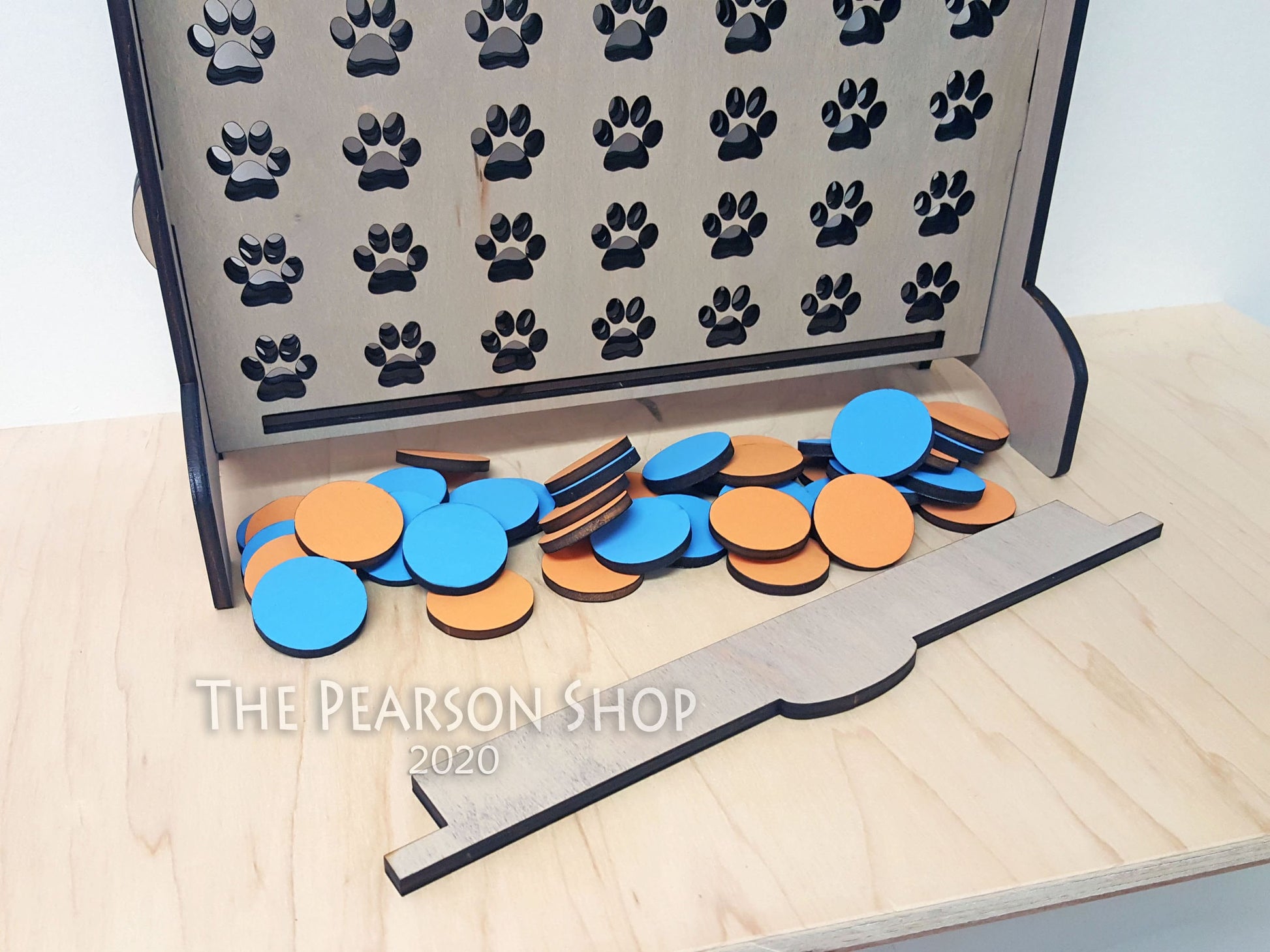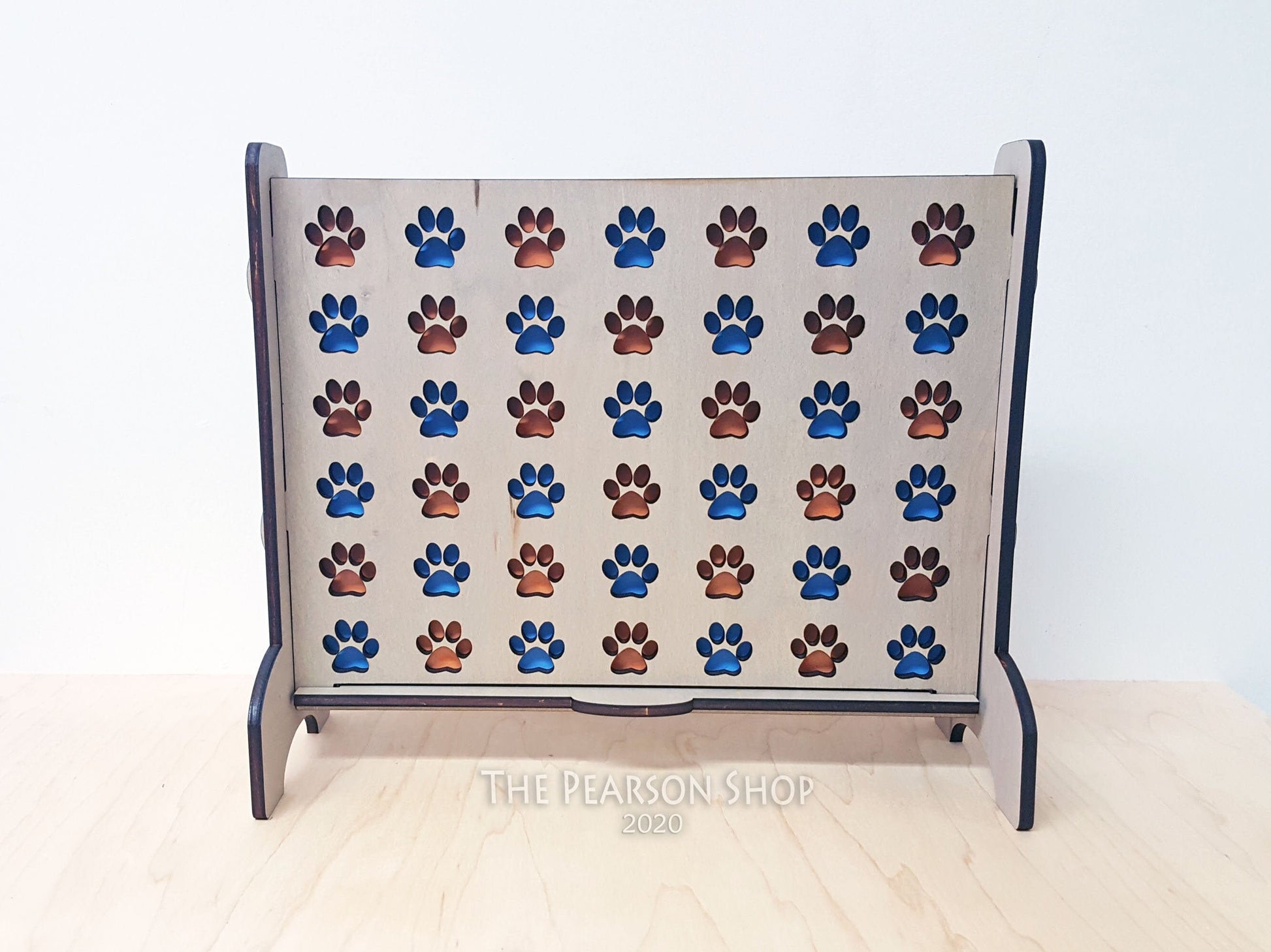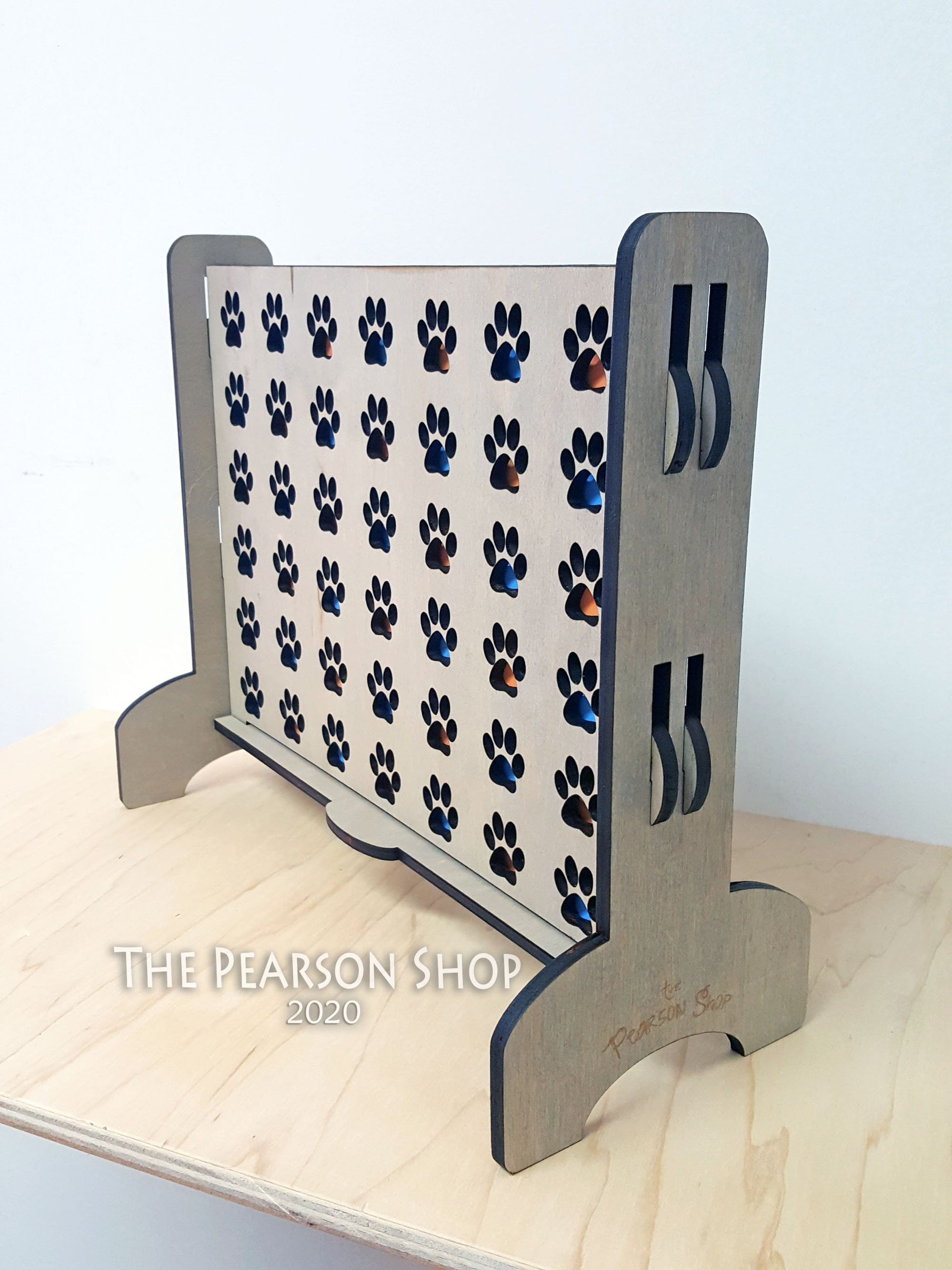 GAME → laser cut from 1/4" maple plywood. colored with minwax stain (if a stain color is chosen). "natural" color option is unfinished, natural wood.