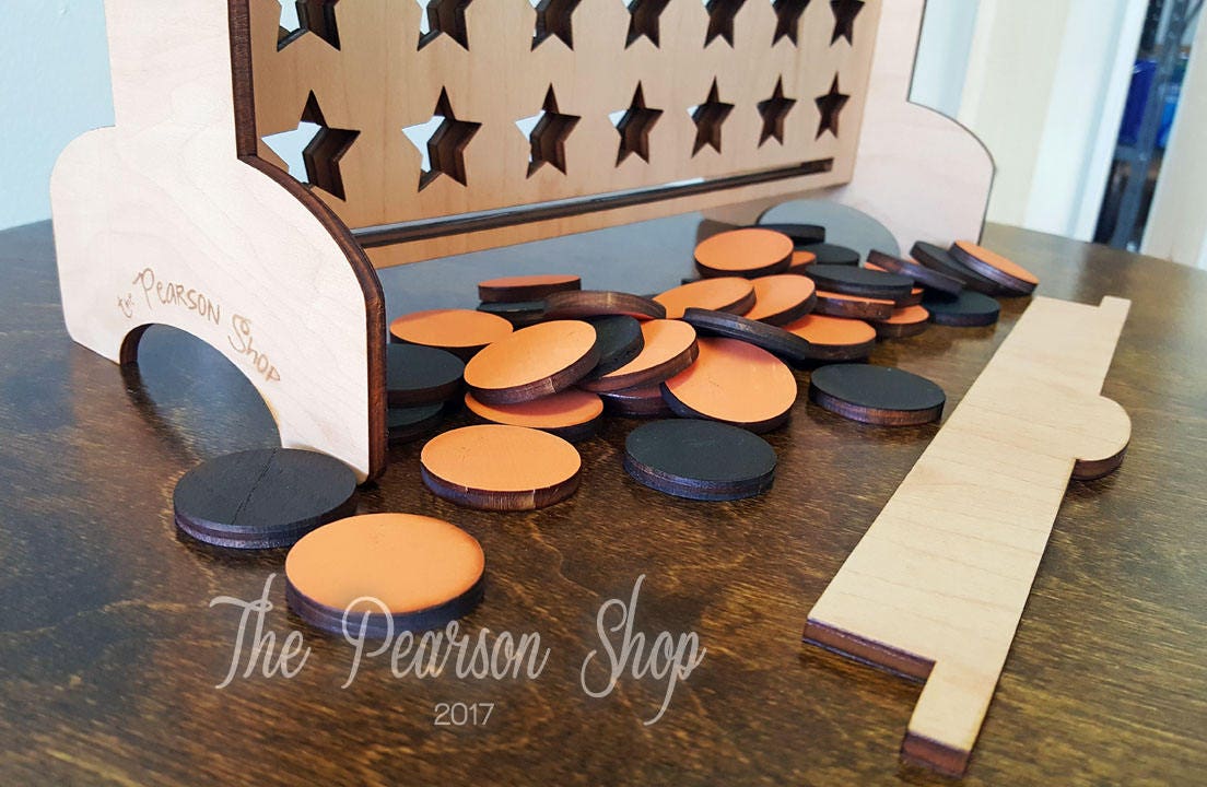 GAME → laser cut from 1/4" maple plywood. colored with minwax stain (if a stain color is chosen). "natural" color option is unfinished, natural wood.